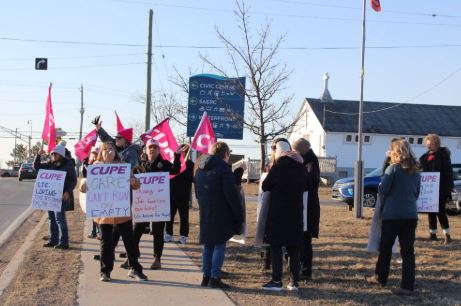 Photos courtesy CUPE 3630. CUPE 3630 members stand on the picket line in Port Hawkesbury, calling for fair wages, safe staffing levels and improved working conditions in long-term care.